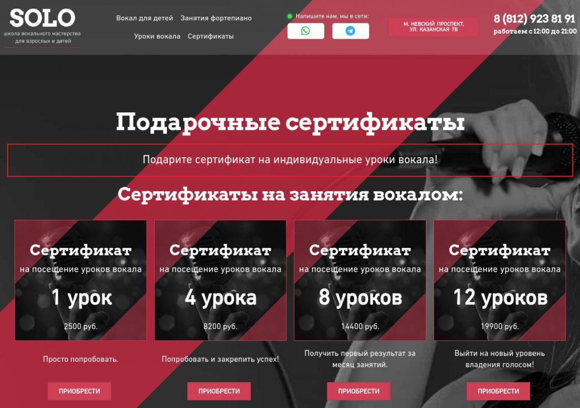 Профессиональное обучение вокалу открывает двери в мир музыки. Сертификат школы вокального мастерства Solo станет отличным подарком для творческих людей, которые любят петь и хотят усовершенствовать свои навыки в этом искусстве!